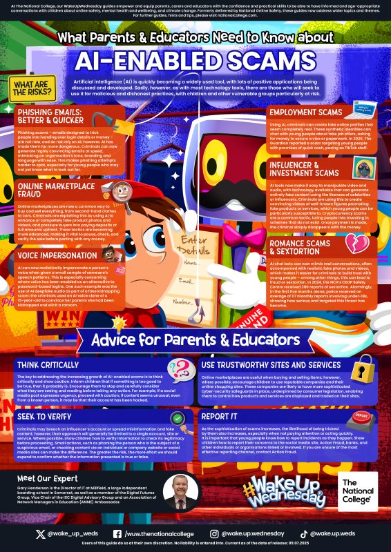 This guide highlights several AI-enabled dangers – including romance scams, deepfake audio and video impersonations, and fake job offers – and explains how to spot and report them. With clear tips for verifying content, thinking critically, and using trusted platforms, it’s essential reading for parents and educators to help young people stay one step ahead of the scammers.