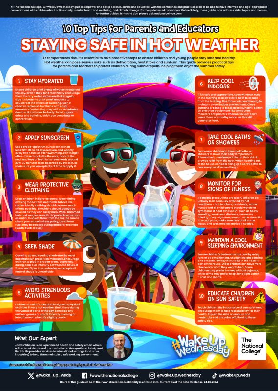 This free guide has gathered ten pieces of expert advice on how to stay safe in hot weather – helping to ensure children and young people can make the most of the summertime without worrying about their wellbeing.